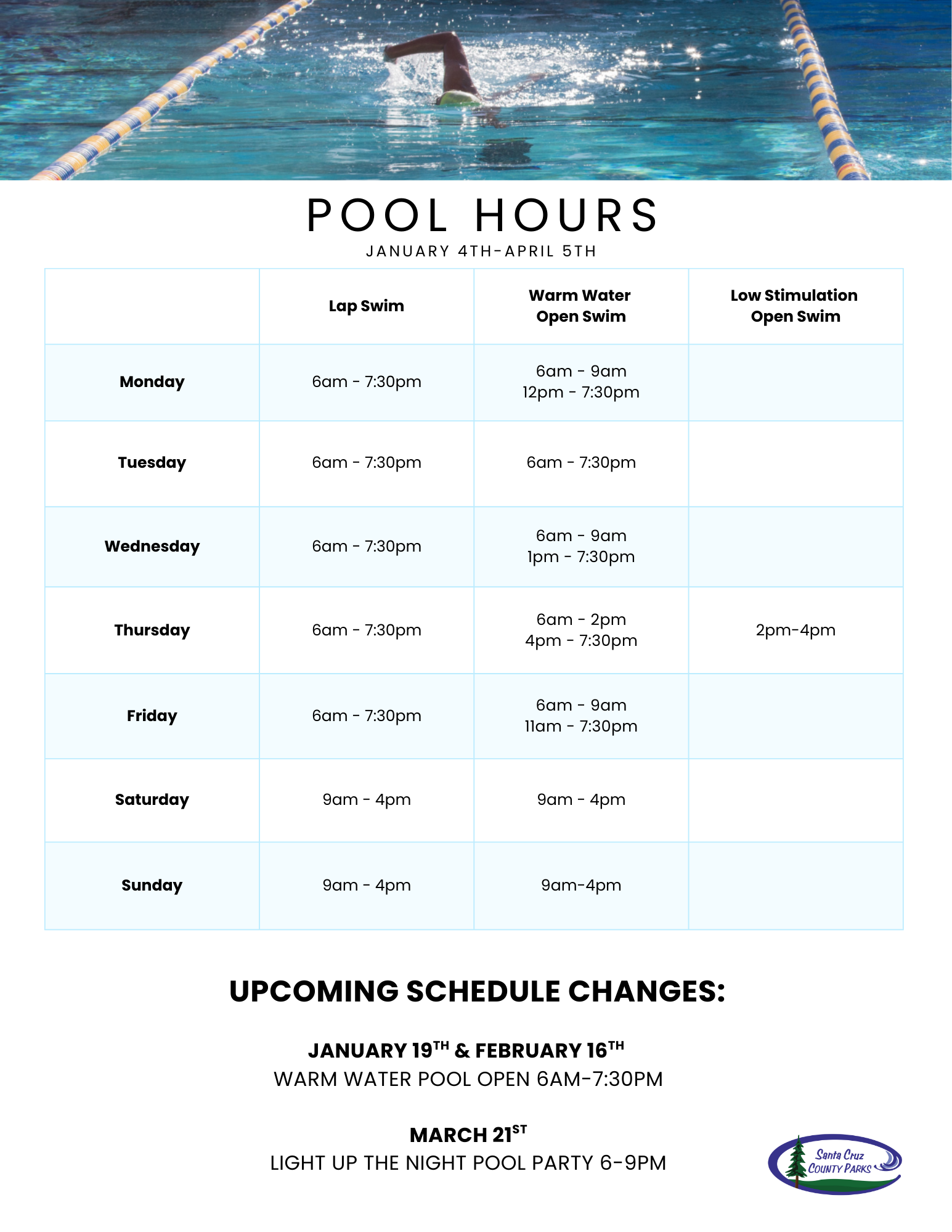 SFSC Guide Admission Fees Pool Rules Fitness Classes Lap Lane Availability January January 4th- April 5th